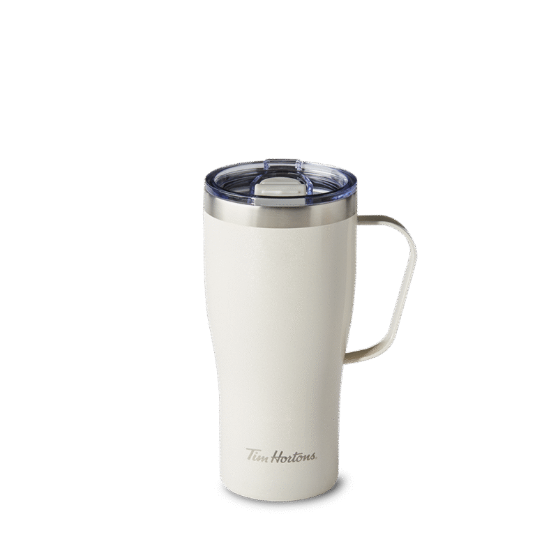Your new favourite accessory of the season is here and it’s the 16oz Tim Hortons Travel Mug in a sleek forest green. Keeps drinks cold for up to 24 hours and hot for up 6 hours.