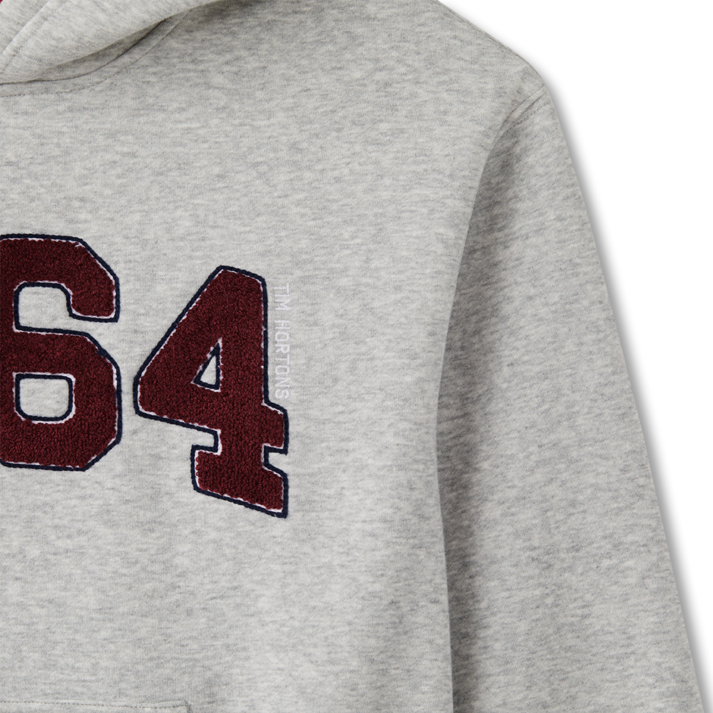 Take your coffee to go with this stylish. unisex hoodie. This classic Varsity hoodie gives a nod to the Tims legacy. since 1964 featuring a chenille patch and embroidered logo. Perfect for wearing on your daily coffee-run.