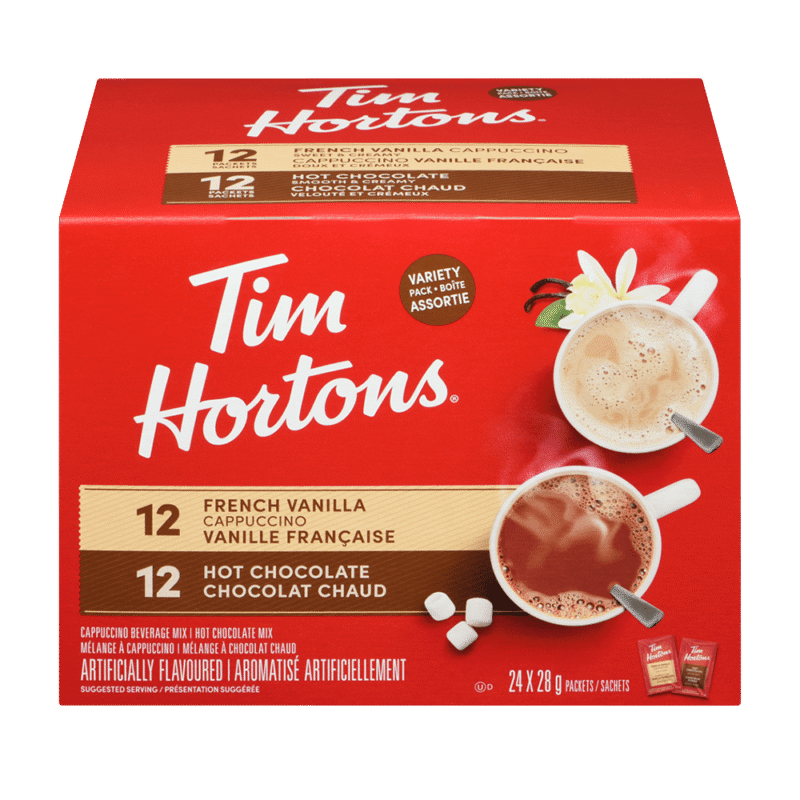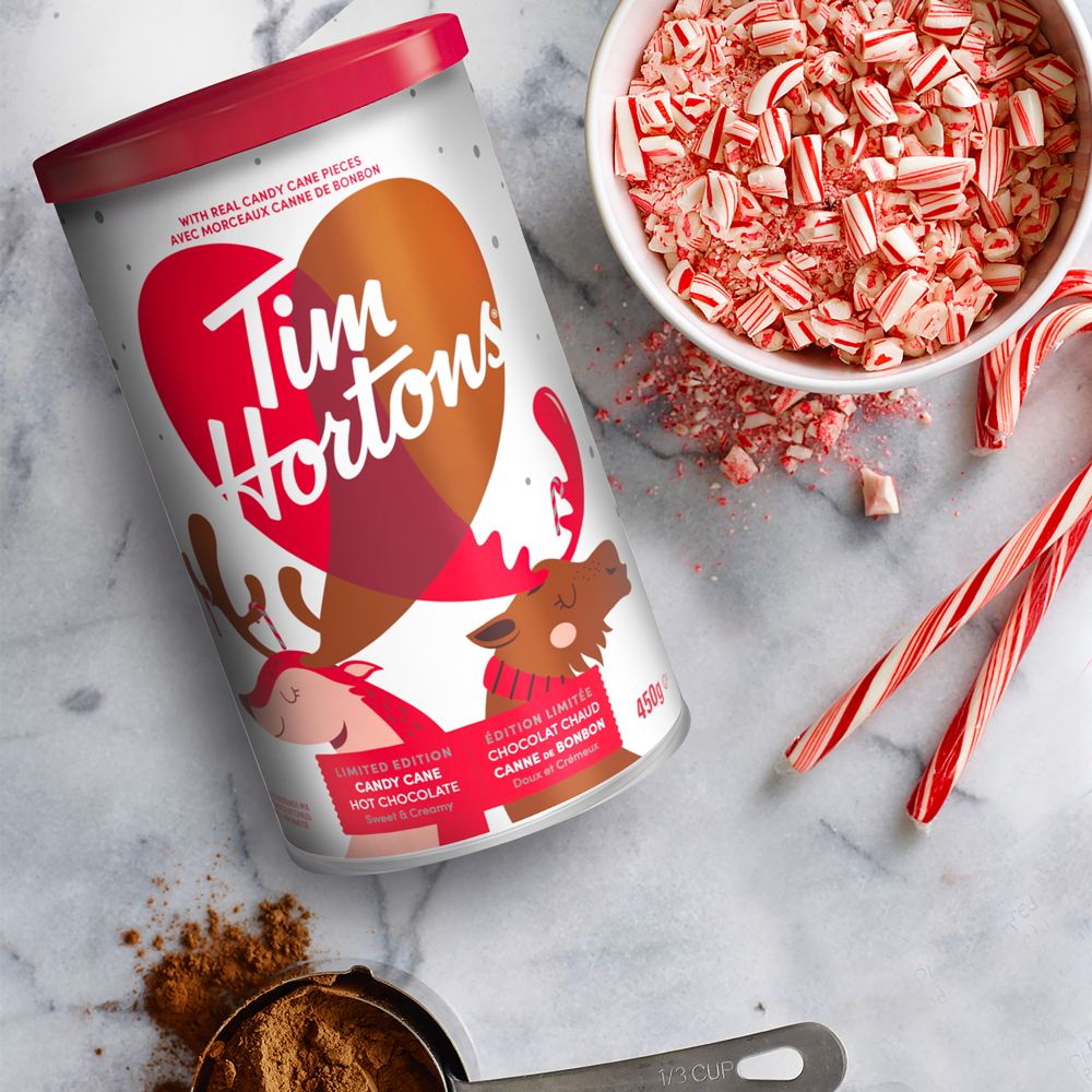 Tim Hortons Candy Cane Hot Chocolate is a delicious minty hot chocolate mix that includes real crushed candy cane pieces that melt into hot water or hot milk. creating the perfect sweet treat for the Holiday Season. Enjoy your favorite Tim Hortons Holiday beverage from the comfort of your own home.